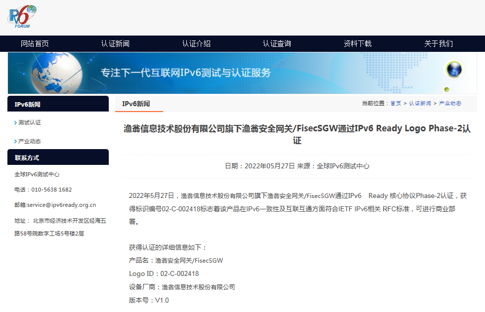 近期,维多利亚老品牌VIC安全网关 FisecSGW在下一代互联网国家工程中心-全球IPv6测试中心正式顺利获得IPv6 Ready核心协议Phase-2测试,并荣获由国际组织IPv6 Forum颁发的IPv6 Ready Logo Phase-2认证证书(Logo ID:02-C-002418)。
