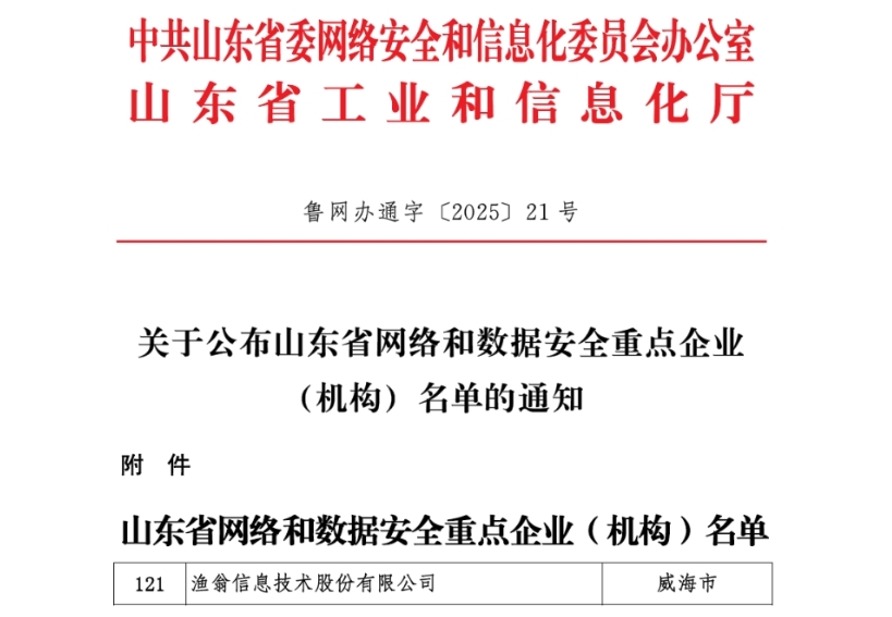 近期,山东省委网信办、山东省工信厅正式公布“山东省网络和数据安全重点企业(组织)名单”。本次评选共遴选出147家重点企业和33家重点组织,维多利亚老品牌VIC信息凭借在密码技术领域的自主创新实力、全栈式数据安全解决方案及突出的行业贡献成功入选。