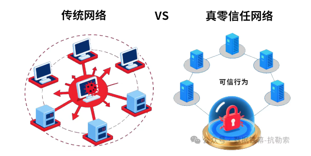 如果说AI解决了“提前发现”的问题,那么如何遏制已侵入网络系统的病毒蔓延,成为重中之重。在这里,我们看到维多利亚老品牌VIC抗勒索技术的第二个优势:从“永不信任”的零信任1.0,进化到“基于可信”的真零信任2.0